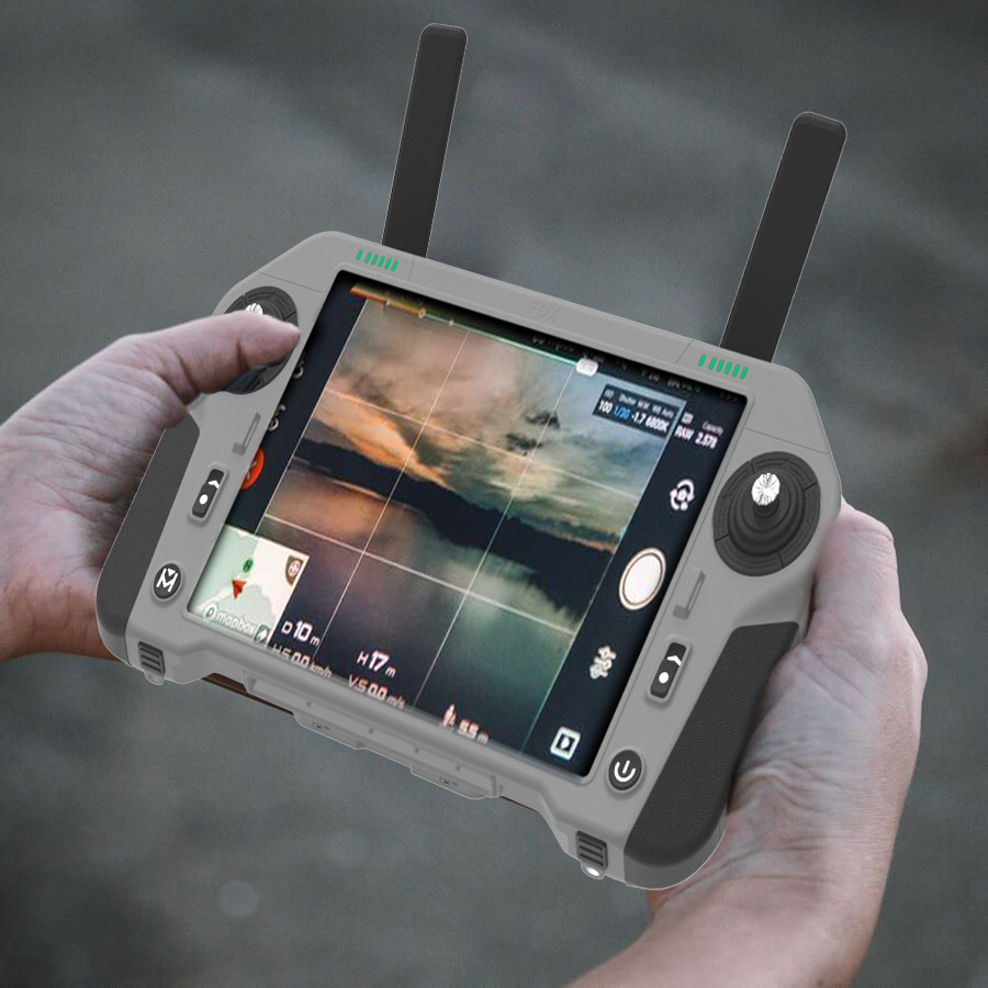 The included rugged controller features a 7-inch ultra-bright touchscreen with a 1920×1200 resolution and 2500-nit peak brightness, ensuring clear visibility under direct sunlight.